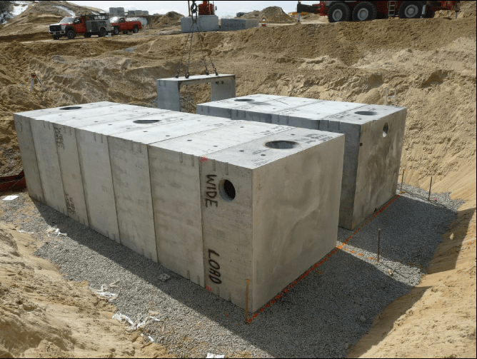 TUNNEL TANKS are made up of precast sectionalized components to accommodate the larger capacity needs of commercial construction markets. ACME SHOREY manufactures & inventories five basic sections to make up tanks sizing from 10,000 to 50,000 gallons. Capacities can be increased by simply adding additional sections. Please feel free to reach out to us to discuss your project so we may assist you with better details.