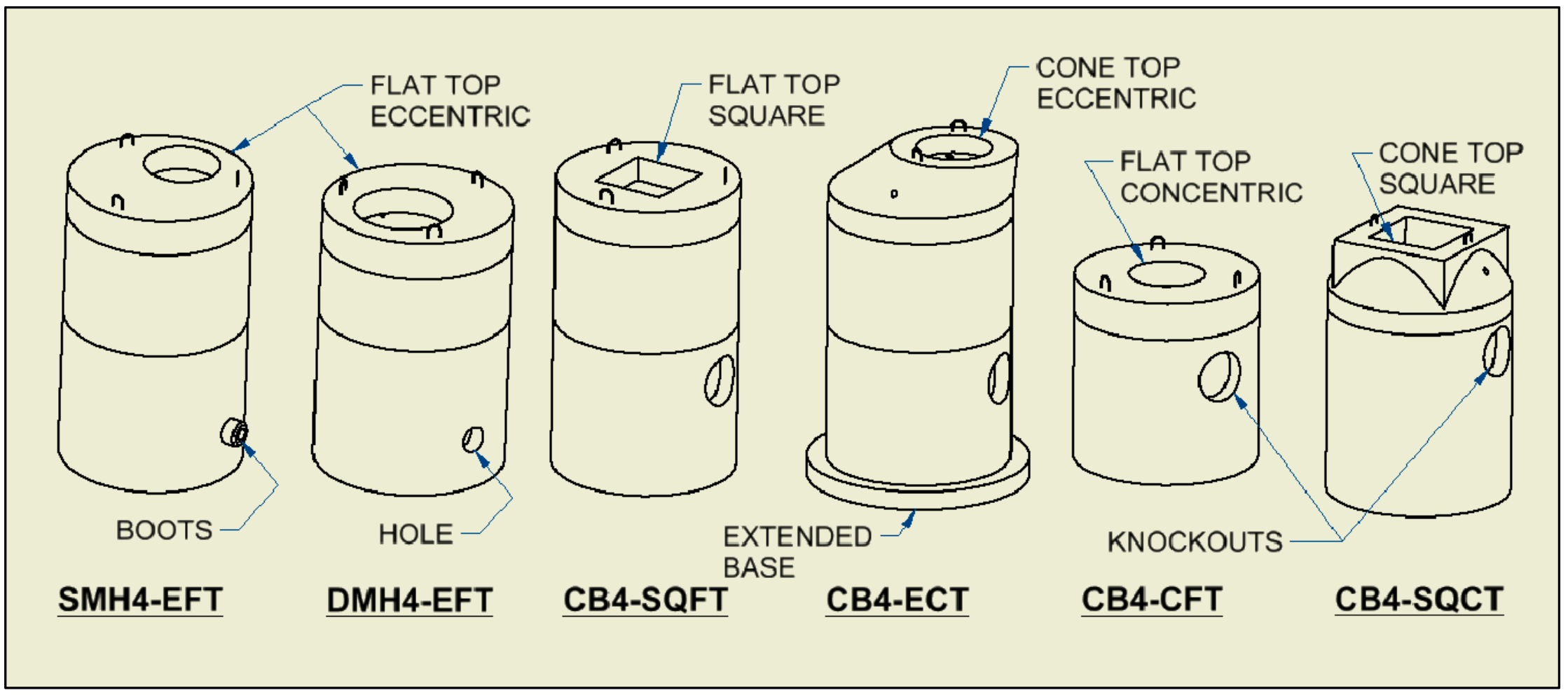 A Manhole is a vertical shaft that allows access to sewer or storm-water lines usually at a junction to assist with connections, direction changes, inspections and repairs. Catch basins & Drain Manholes collect surface water from an area and direct it to an outlet location while Sewer Manholes are for sewer applications and are booted & coated to better seal the transport. There are also many variations of Manhole tops to assist the end-user in customized access.